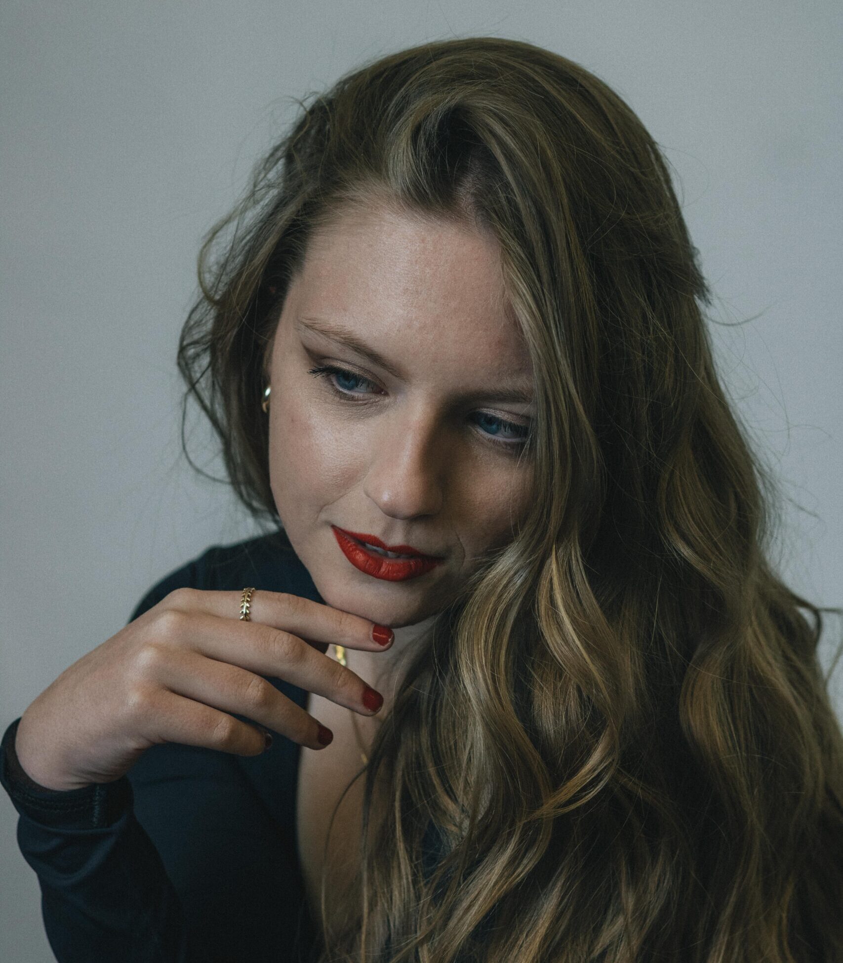 ブルー系の魅力は、ブラックほど重く見えず、クレームほど繊細すぎない中間の存在感にあります。